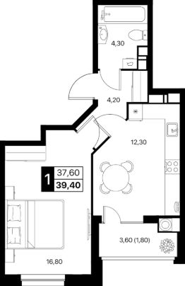 Общая площадь39,4 м²