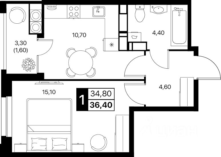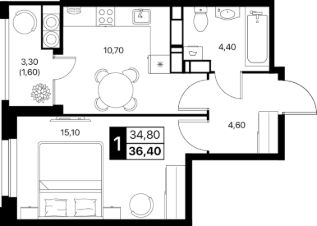 Общая площадь36,4 м²