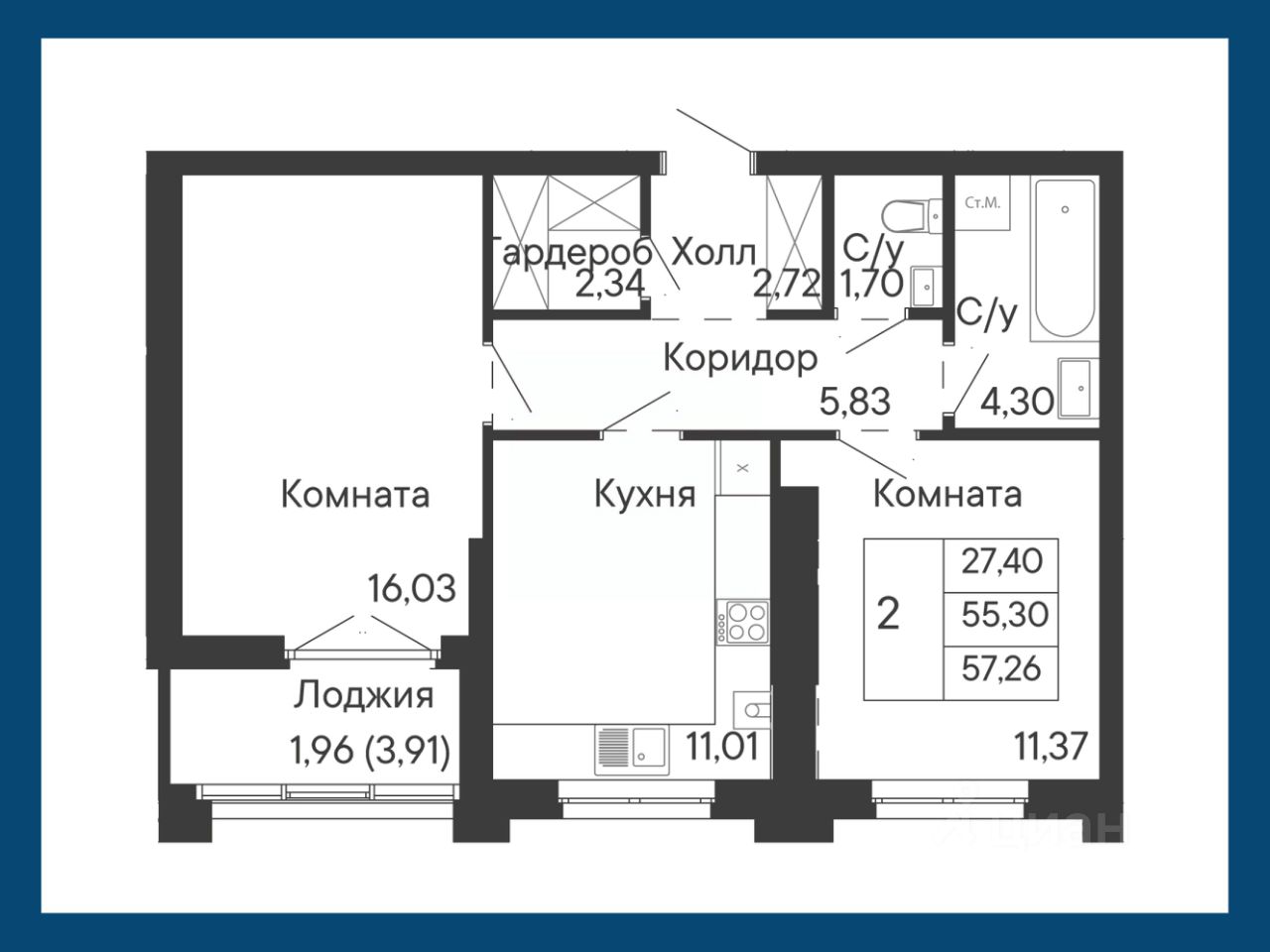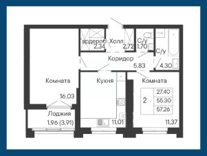 Общая площадь57,26 м²