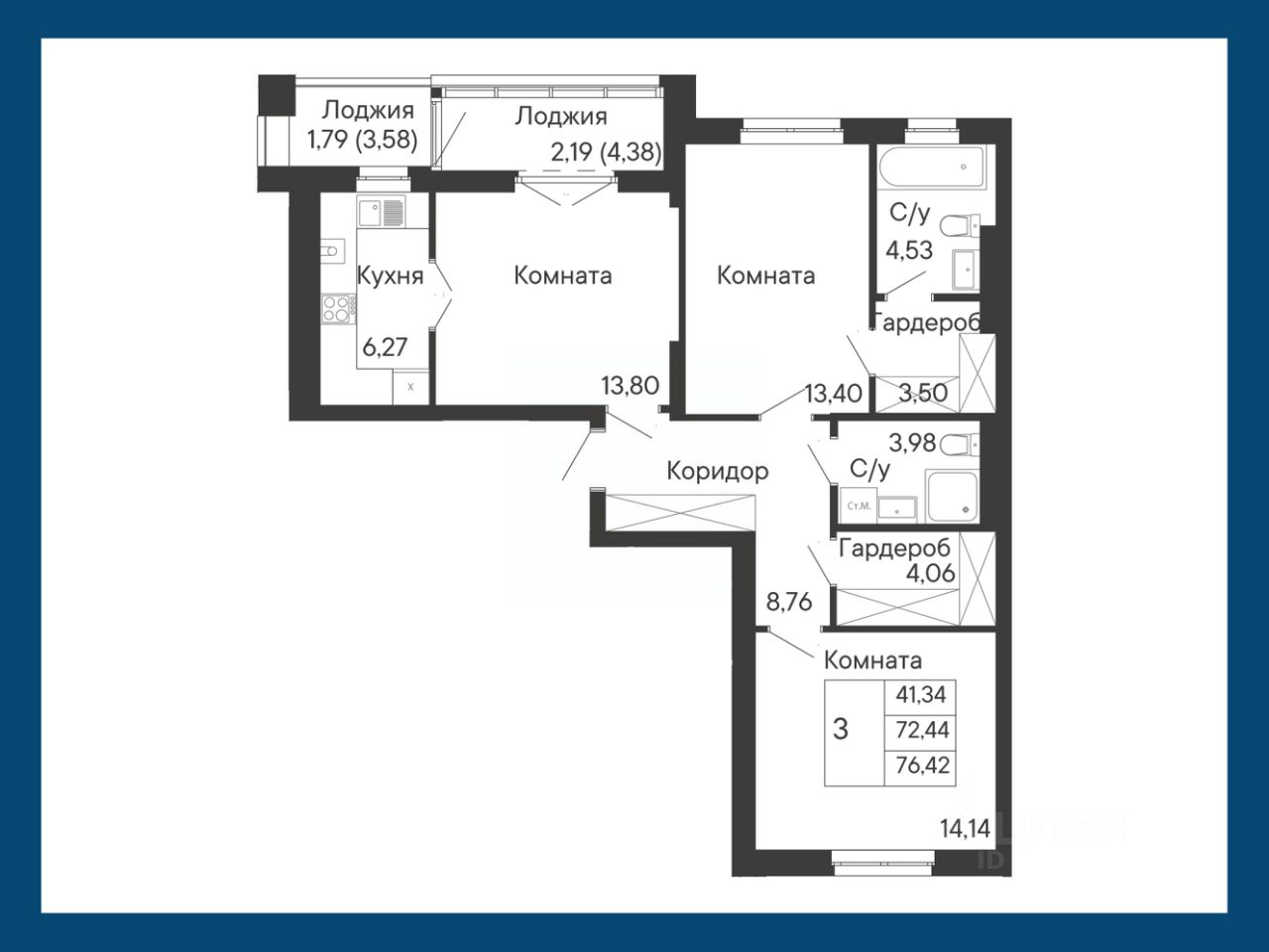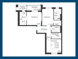 Общая площадь76,42 м²