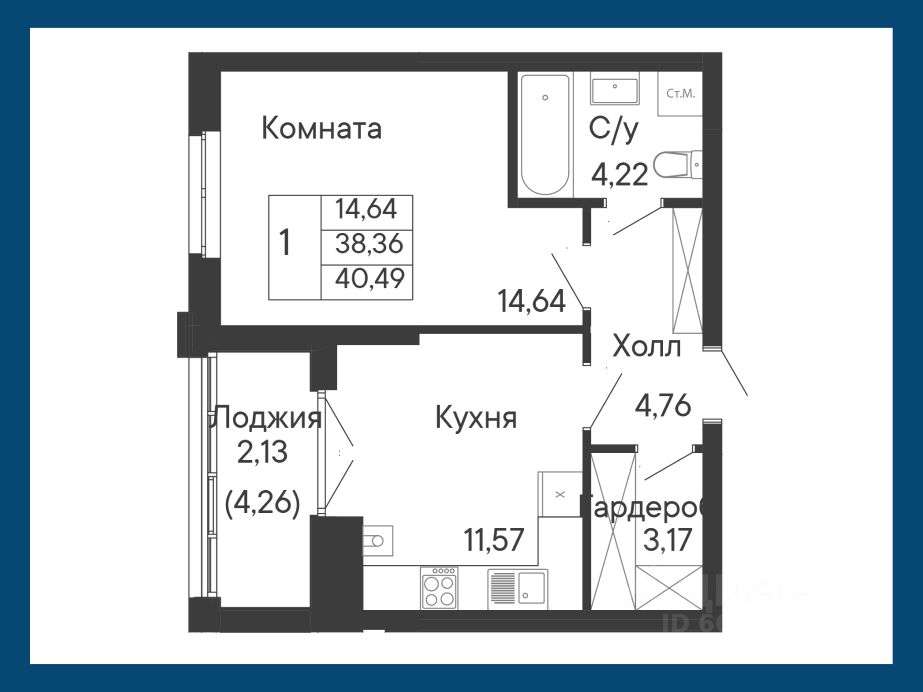 Общая площадь40,49 м²