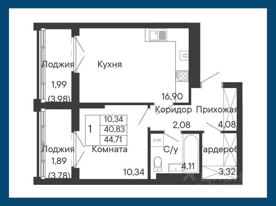 Общая площадь44,71 м²