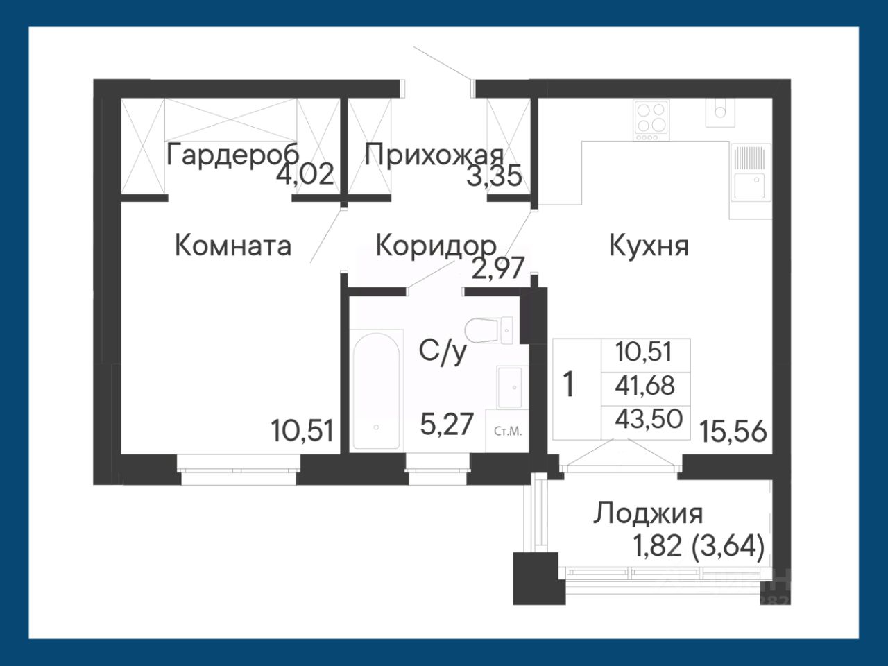 Общая площадь43,5 м²