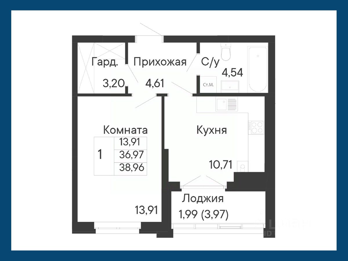 Общая площадь38,96 м²