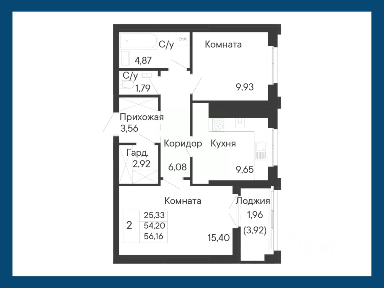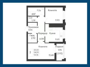 Общая площадь56,16 м²