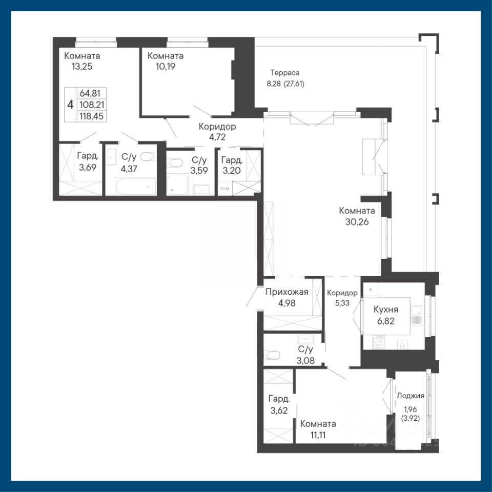 Общая площадь118,45 м²