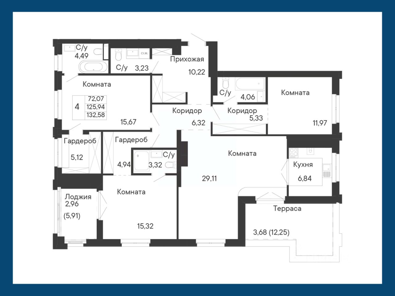 Общая площадь132,58 м²