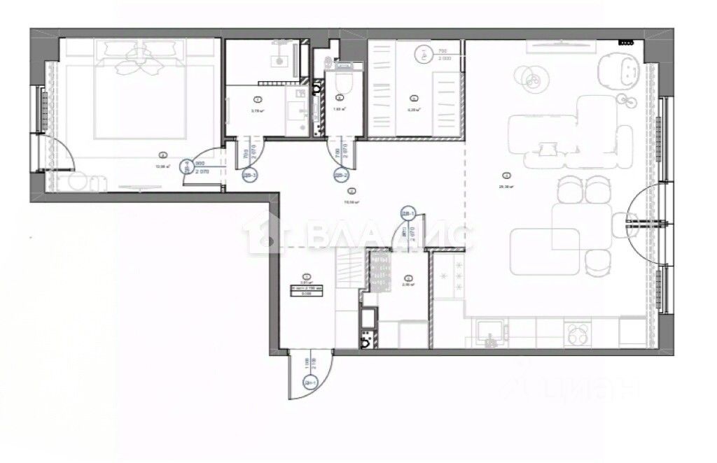 Общая площадь - 69,9 м²;