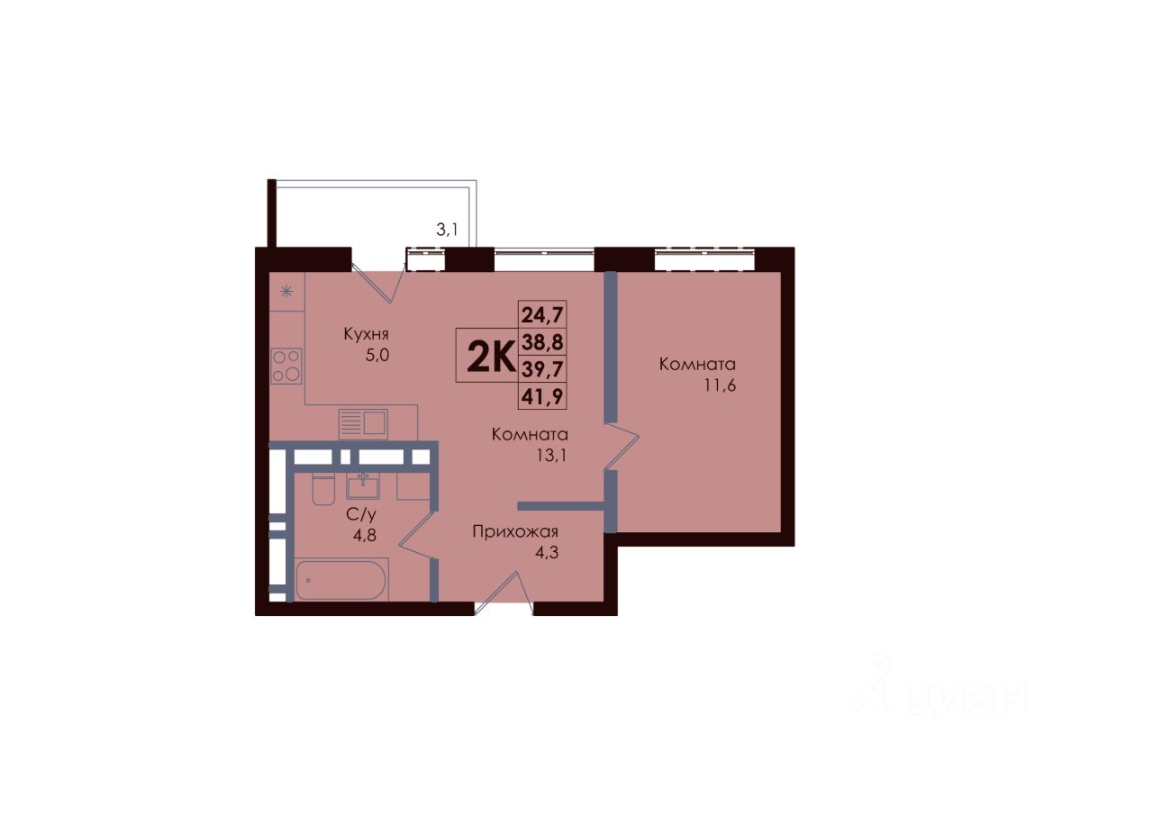 Жилая площадь24,7 м²