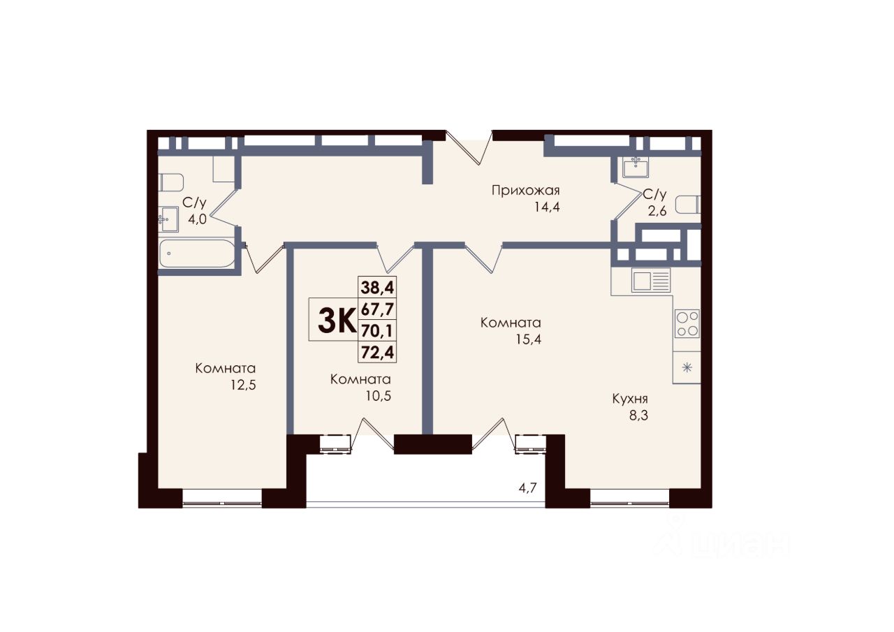 Общая площадь70,1 м²