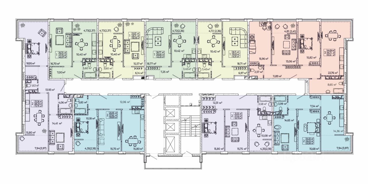 Наличие квартир представленных в комплексе от просторных однокомнатных до комфортных евро трех и четырех комнатных квартир.