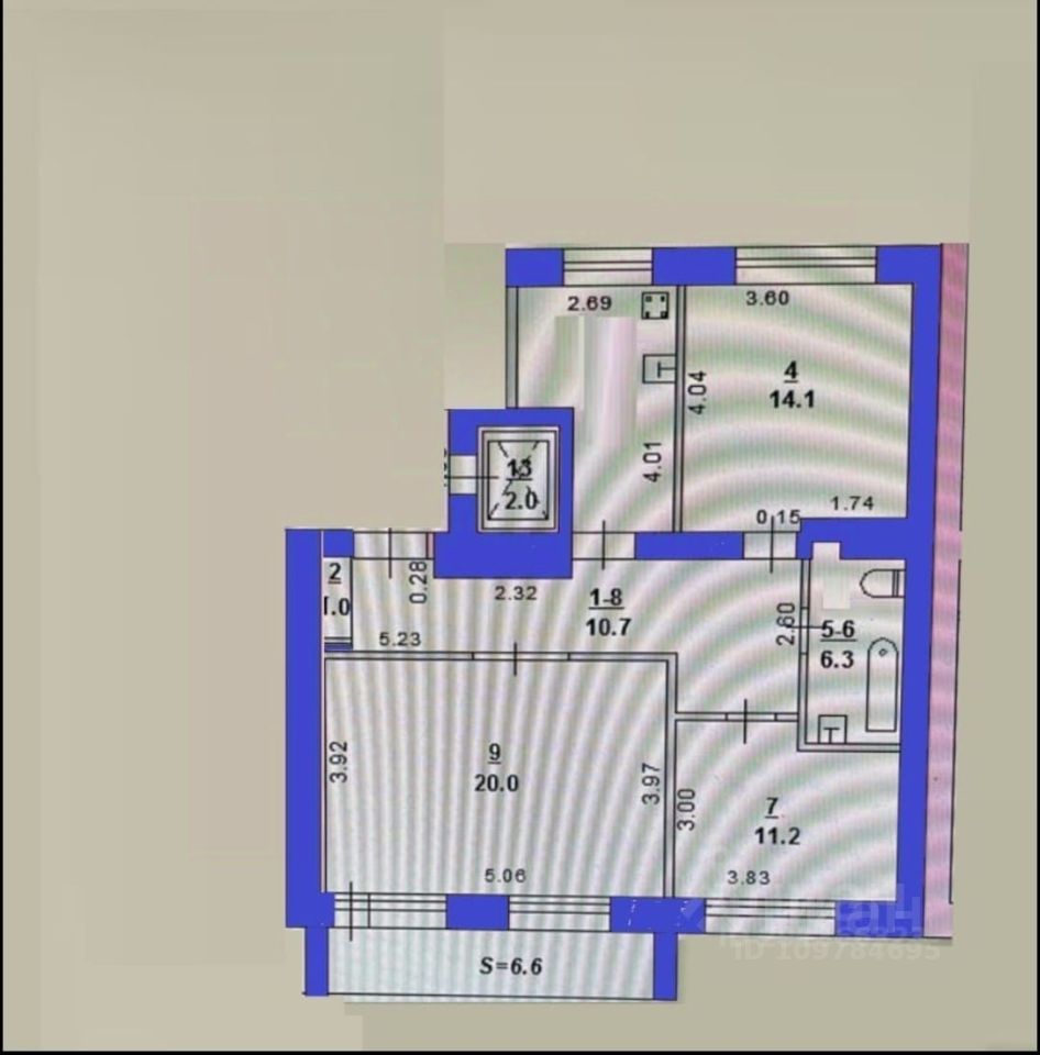 Общая площадь 71,3 кв. м , расположена 3 этаже 9 этажного кирпичного дома.