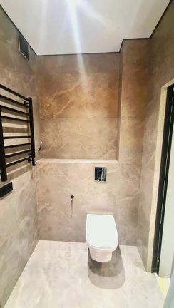 На полу в холле, ванной и кухне - широкоформатный керамогранит 600х1200 Испания.