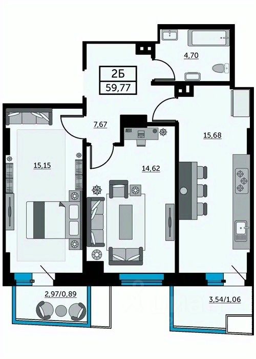 Продается 2-к квартира в ЖК Сердце Ростова 2