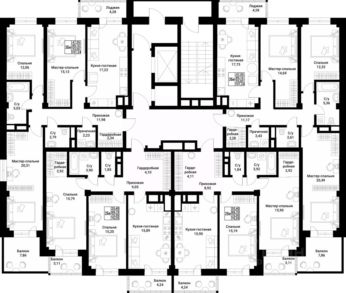 • 4-6 квартир на этаже