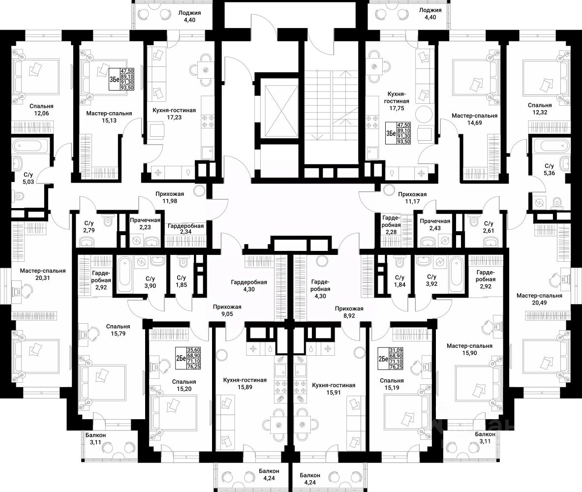 • 4-6 квартир на этаже