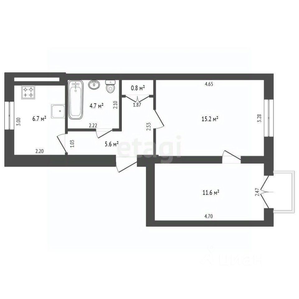 Продается светлая двухкомнатная квартира площадью 44.6 кв.м на втором этаже двухэтажного кирпичного дома.