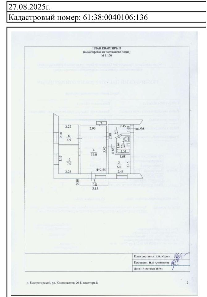 Продается уютная трехкомнатная квартира в поселке Быстрогорский по адресу улица Космонавтов, 8. Общая площадь квартиры — 41 квадратный метр, жилая — 27.9 квадратных метров, кухня — 6 квадратных метров. Она расположена на втором этаже двухэтажного кирпичного дома, построенного в 1966 году. У квартиры есть балкон с окнами, выходящими как на улицу, так и во двор. Так же в эту стоимость входит большой гараж с ямой во дворе. Ремонт косметический , ванная и кухня требуют ремонта. Ни кто не прописан , 1 собственник.