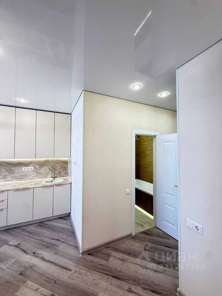 Продается уютная однокомнатная квартира в современном кирпичном доме на улице Нансена, 83, в Ростове-на-Дону. Общая площадь квартиры составляет 45 кв. м, из которых 18 кв. м — жилая площадь и 16 кв. м занимает просторная кухня. Квартира расположена на последнем, 24-м этаже, что открывает живописный вид на город и двор. Высота потолков — 2,75 метра, что создает ощущение простора и света.