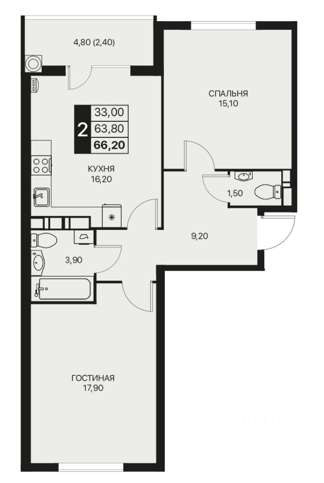Общая площадь66,2 м²