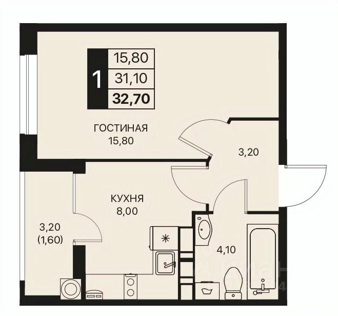 32,7 м²