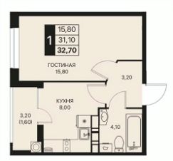 32,7 м²