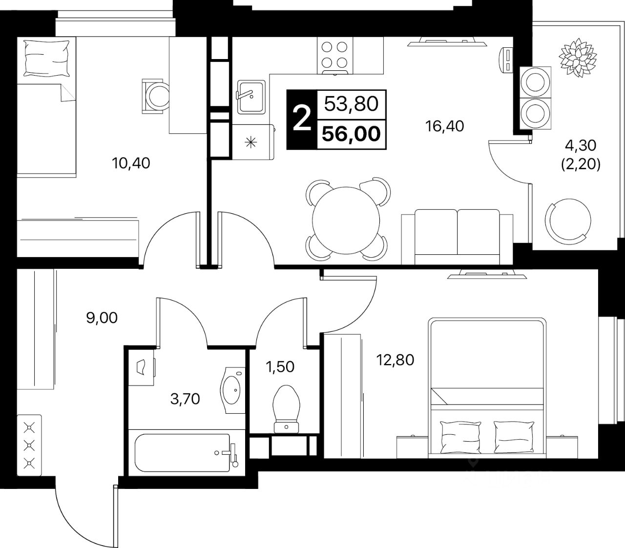 56 м²