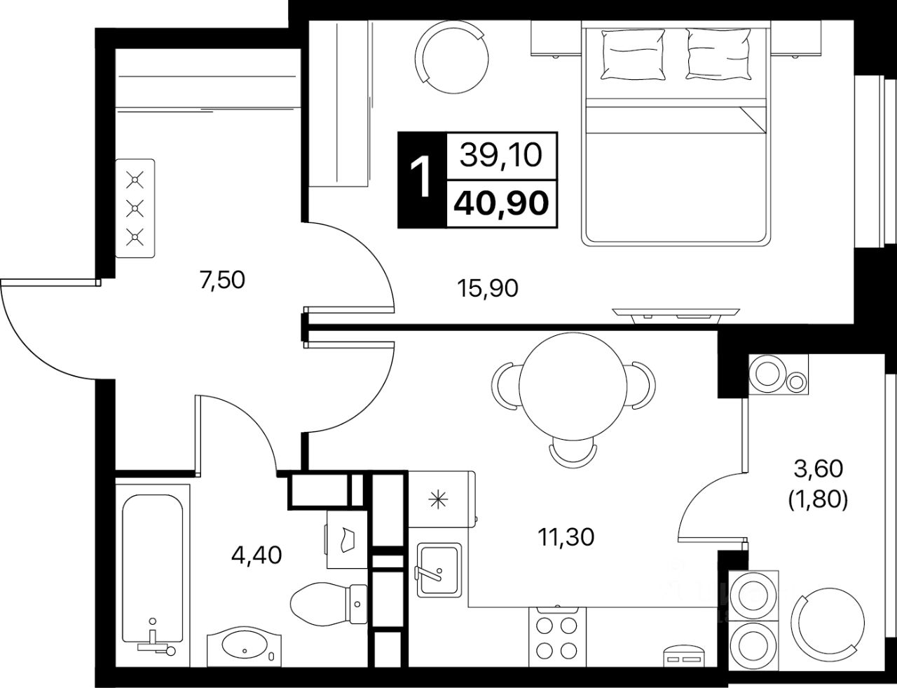 40,9 м²