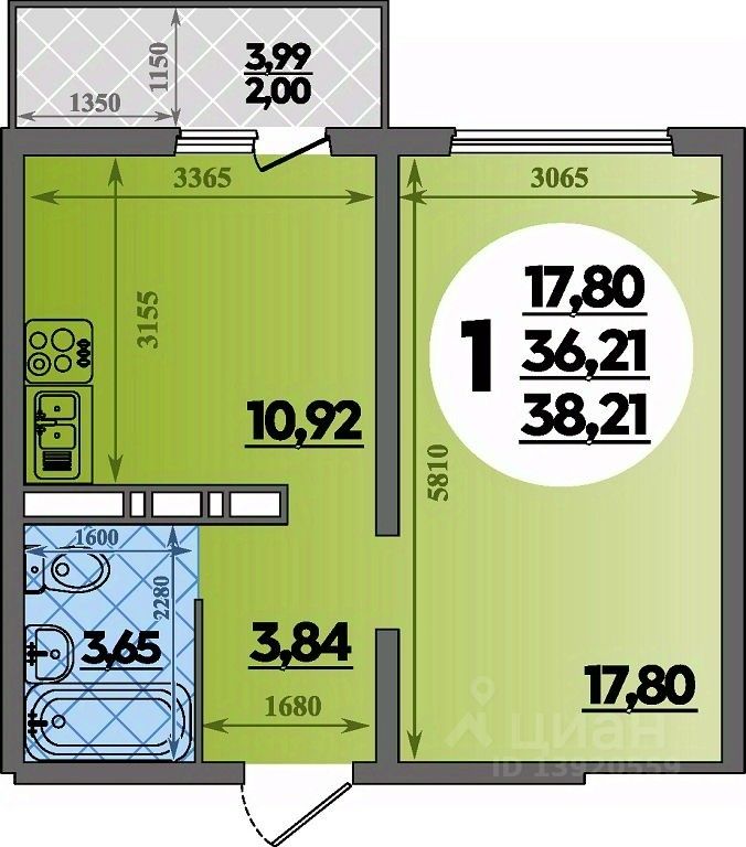 Продаётся 1-комнатная квартира в сданном доме (Дмитрия Петрова, 5 (Литер 5)), срок сдачи: III-кв. 2024, общей площадью 38.21 кв.м., на 15 этаже. ГOTOBЫЙ PЕМОНТ ПОД КЛЮЧ