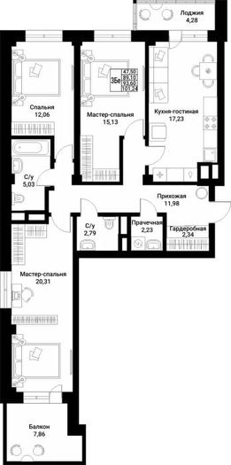 1 лоджия, 1 балкон