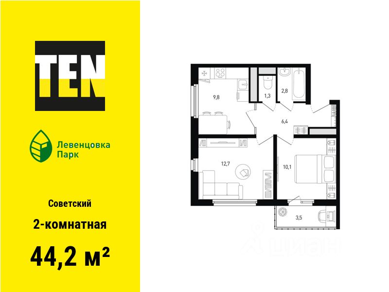 Общая площадь44,2 м²