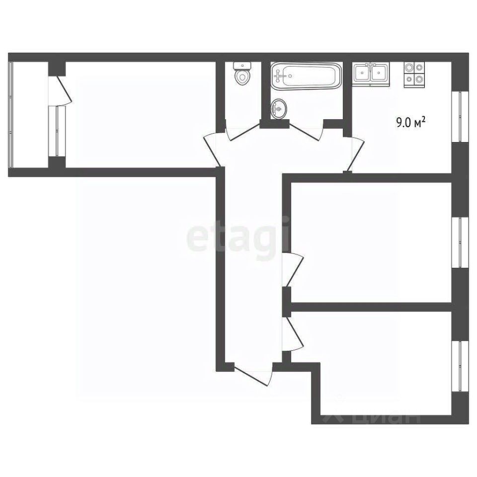 Продажа трехкомнатной квартиры в районе с развитой инфраструктурой. Планировка бабочка, с изолированными комнатами.