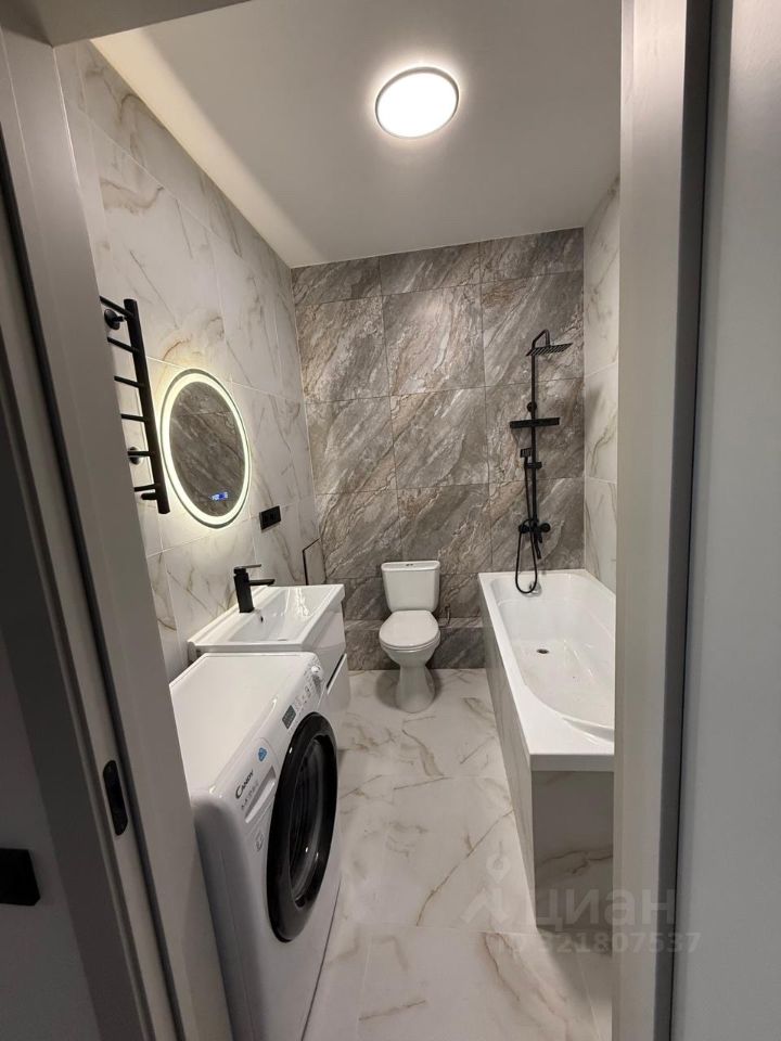 Просторный санузел! Ещё один приятный бонус — санузел увеличенной площади, что редкость для студий. Возможность установить стиральную машину без ущерба для комфорта.
