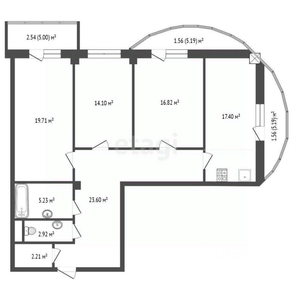 Планировка: просторная кухня, три изолированные комнаты, два санузла (бойлер), гардеробная и три лоджии (две большие с витражным остеклением и одна стандартная).