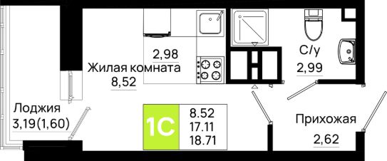 Общая площадь18,71 м²