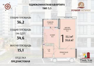Общая площадь34,6 м²
