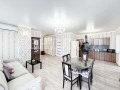 Кухня-гостиная в этой квартире поразит вас своей просторностью - 27 квадратных метров, идеально для приема гостей и семейных ужинов. И благодаря панорамному остеклению, вы сможете наслаждаться прекрасным видом из окна!