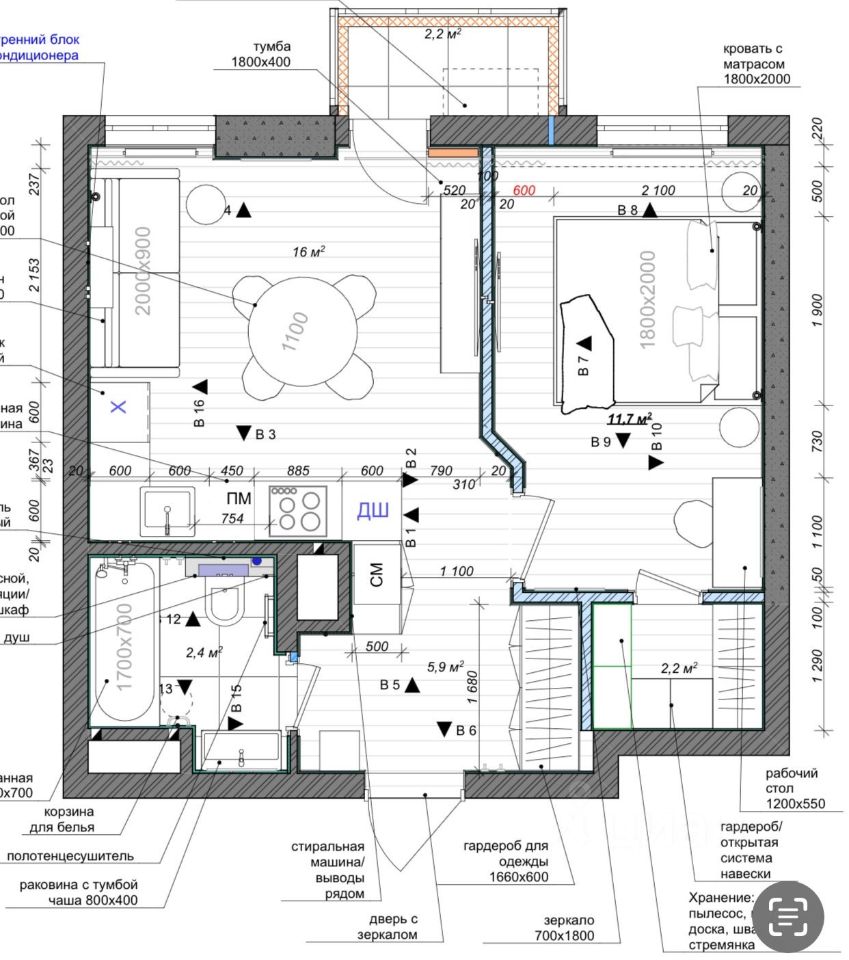 16 м²