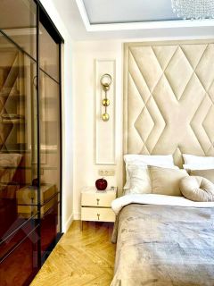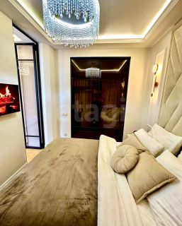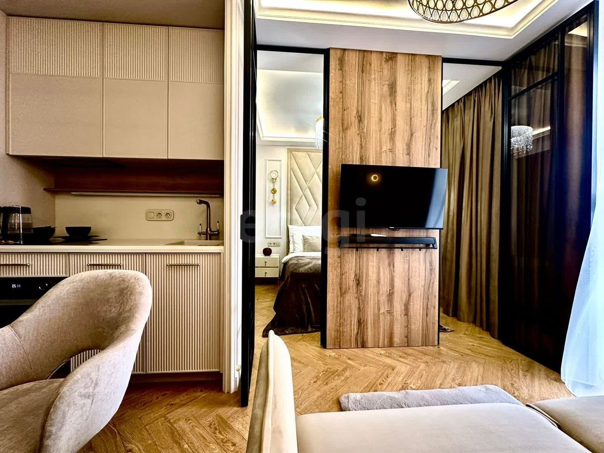 Прекрасная возможность стать владельцем шикарной студии с уникальным дизайнерским ремонтом! Эта уютная студия — идеальный выбор для тех, кто ценит стиль и комфорт. Зона спальни изящно отделена стеклянными дверями-купе, создавая атмосферу уюта и приватности. В спальне вас ждет великолепная дизайнерская кровать с ортопедическим матрасом, обеспечивающая идеальный отдых после долгого дня.