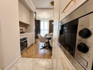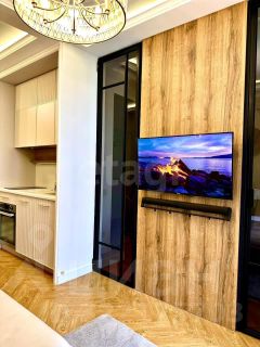 Из окон открывается захватывающий вид, который будет радовать вас каждый день. Встроенная мебель, выполненная на заказ, гармонично вписывается в интерьер, а отдельная гардеробная добавляет удобства и функциональности. Студия полностью укомплектована всем необходимым для комфортного проживания — вам не придется тратить время на покупки.