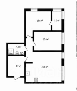 Планировка: две комнаты, кухня-гостиная, просторный санузел ,
