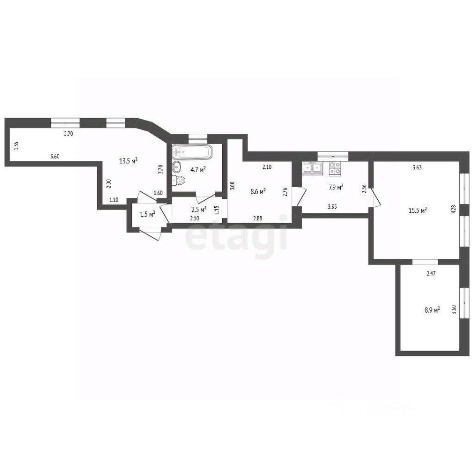 Квартира очень теплая и просторная! Общая площадь - 63,1 м2.