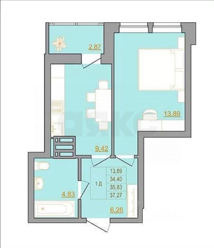 В продаже однокомнатная квартира 37 м² в черновой отделке в ЖК "ЭКО квартал Новый Горизонт".