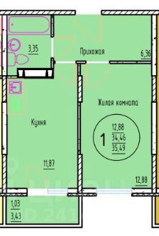 1 лоджия, 1 балкон