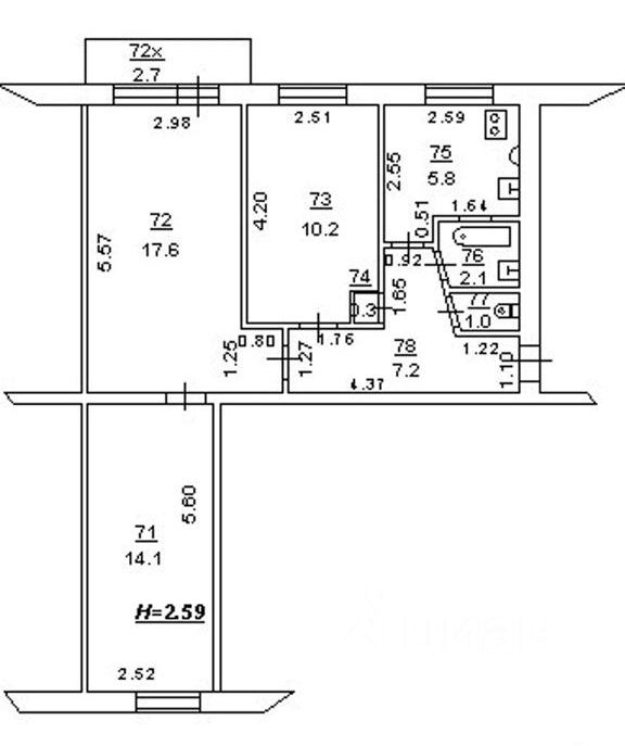 58,3 м²