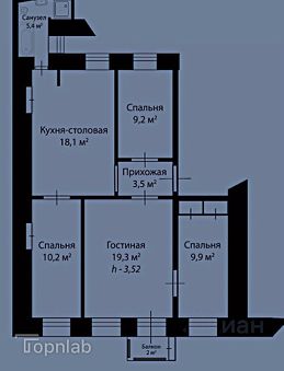 Общая площадь квартиры-77.6 кв.м, расположена на 2-м этаже 3х этажного кирпичного дома.