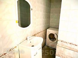 - ванная комната с большим окном, обеспечивающим хорошую вентиляцию, и имеющая дополнительное место для установки стиральной машины.