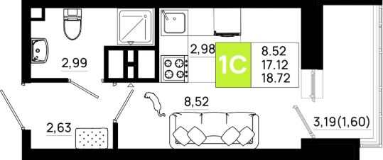 18,72 м²