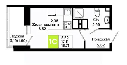 18,71 м²