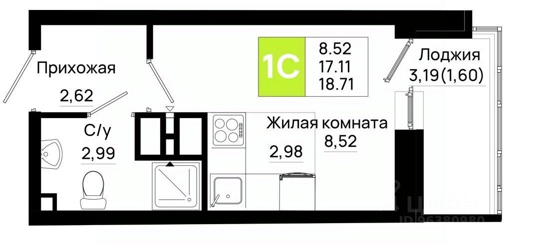 18,71 м²